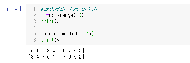 데이터 순서 교환 shuffle()