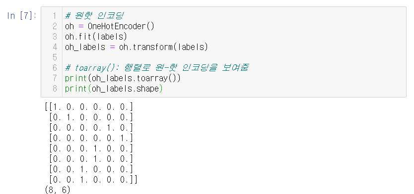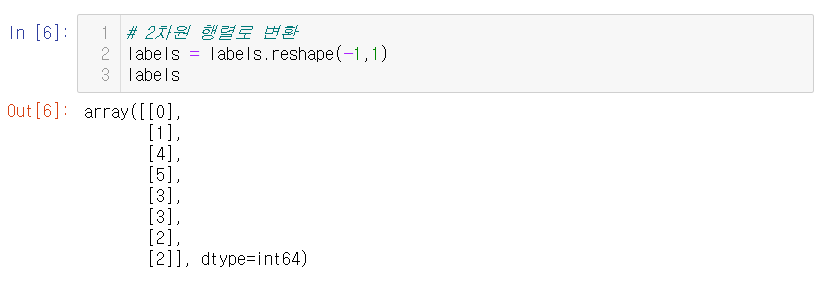 1) 모듈 임포트 from sklearn.preprocessing import OneHotEncoder