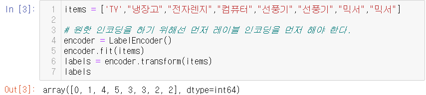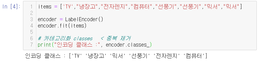 1) 모듈 임포트 from sklearn.preprocessing import LabelEncoder