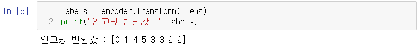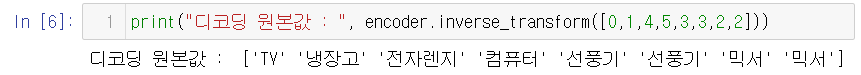 4) 디코딩 : 레이블 인코딩으로 변환된 데이터를 다시 문자형으로 변환