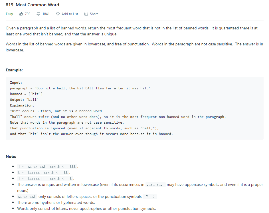 | <파이썬 알고리즘 인터뷰> 04.가장 흔한 단어 (0) | 2020.11.09 |